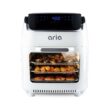 Bake, fry, rotisserie, reheat, dehydrate, grill, and roast your favorite meats, breakfasts, desserts, and vegetables faster than ever with the Aria 10Qt Air Fryer Oven! It has all the features to make it your new “Go-To Appliance” as its AriaFlow technology replaces multiple appliances and cooks in less time than traditional ovens. It also reduces the fat in your food by up to 80% and eliminates the need for oil. Beat the preheat as it heats up to 400° in seconds while the spacious design with 3 cooking levels lets you cook for the entire family or all your guests. It also includes a Rotating Rotisserie spit that spins 360° for evenly-cooked tender juicy chicken dinners, while a Rotating Basket steadily mixes your ingredients like fries, vegetables, frozen snacks, and trail mix so each piece is perfectly prepared. A touchscreen also features 8 presets for foods such as chicken, beef, vegetables, and dessert. With the dehydration mode you can preserve your favorite fruits vegetables and meats conveniently at home using your own ingredients that you trust. The included full-color cookbook lets you prepare mouth-watering meals right away. Our Extended Full-Color Cookbook has exclusive mouth-watering recipes so you can get started right away, including vegan and keto options! Finally, enjoy all your meals in comfort knowing that Aria is the only brand with a Lifetime Warranty and friendly customer service. Endless culinary adventures await – with the Aria 10Qt Air Fryer Oven!