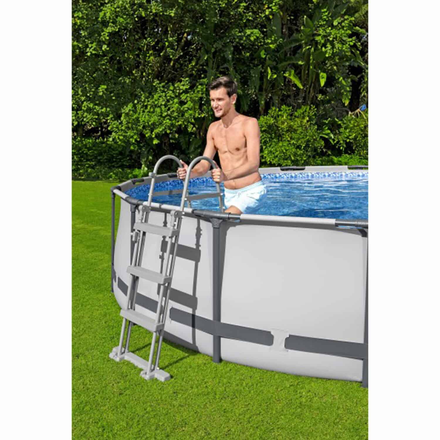 - Includes a 1,000-gallon filter pump, a ladder, and a convenient pool cover