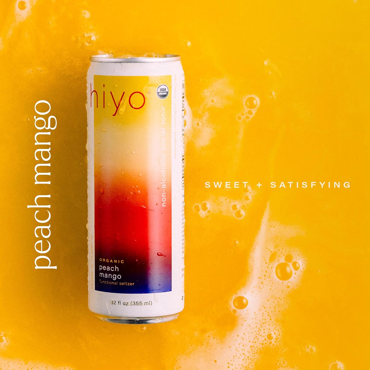 - Hiyo Peach Mango Social Tonic: A functional seltzer that encourages you to enjoy the moment. Sweet peach twists with smooth mango to create a tropical tango so delightful, you can almost feel the trade winds blow. 12 fl oz. / 12 pack
