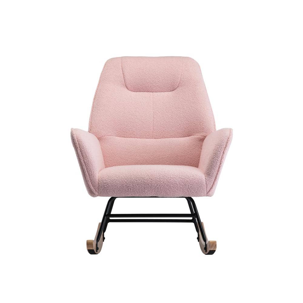 HOMEFUN Pink Comfortable Fabric Upholstered Rocking Arm Chair with Wood Base