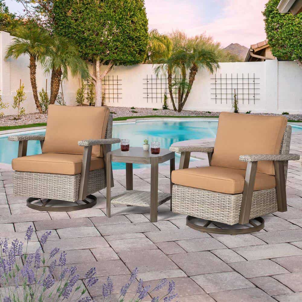 - Item included: 3-piece outdoor conversation set includes 2 swivel chairs and 1 table