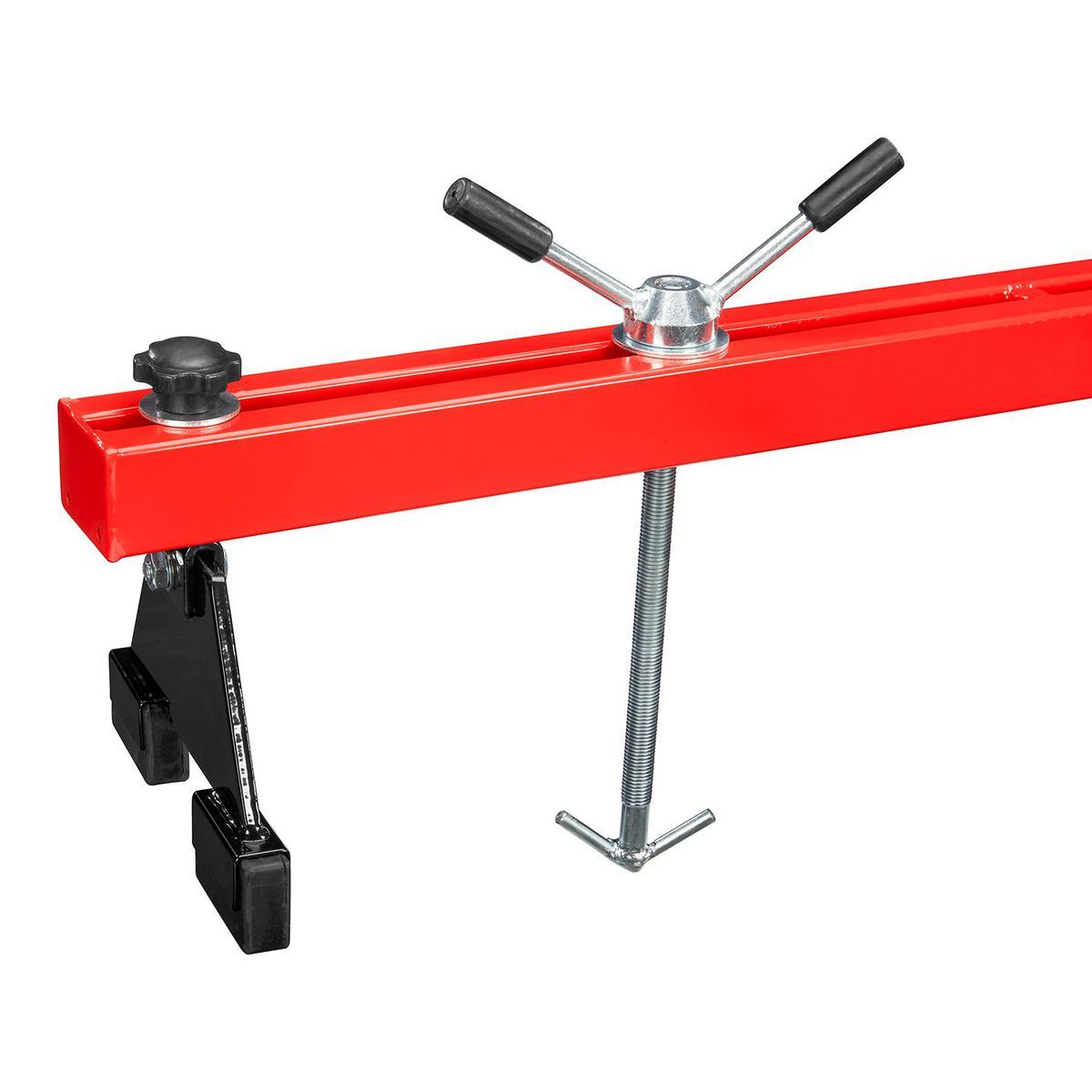 Constructed of heavy-duty powder coated steel for durability, the 1000 lb. capacity engine support bar lets you work on heavy automotive repairs such as removing the transmission or transaxle. The engine support bar comes with everything needed to perform work on your engine or transmission, including a steel beam. The rubber padded support legs prevent slips as well as damage to paint.